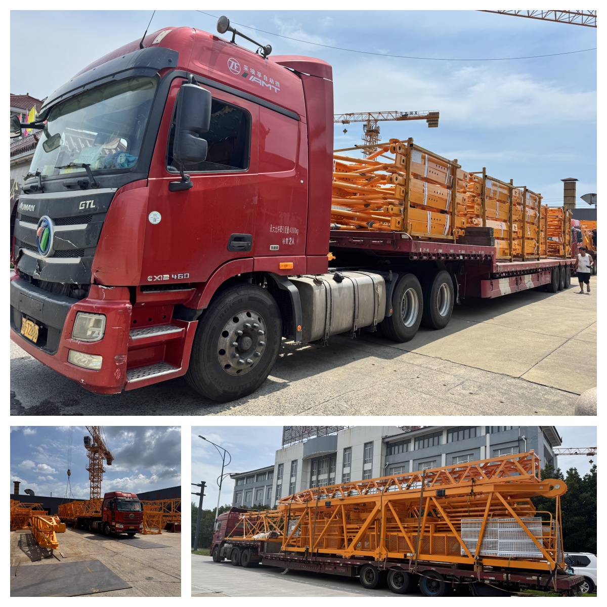 Zwei QTP200 (7020) Flat-Top-Turmkrane, bekannt für ihre hohe Hebekapazität und -stabilität, wurden sorgfältig verpackt und nach Guinea verschickt, um eine groß angelegte Infrastruktur in der Region zu unterstützen.